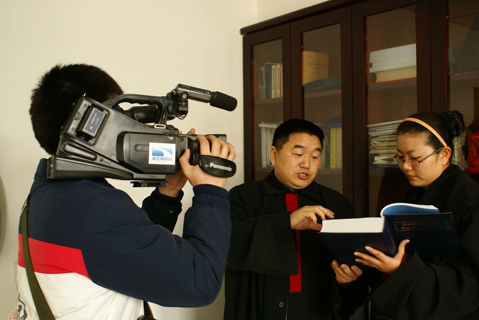 湖北电视台为我院民二庭荣获“青年文明号”录制节目
