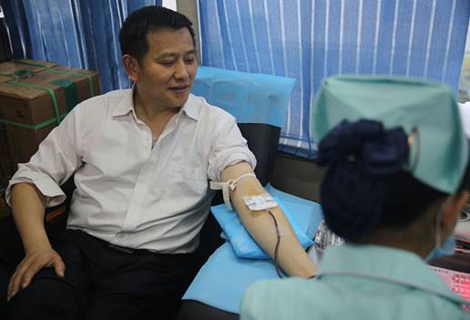 (宋峰)4月14日上午,西陵区法院党组书记、院长方正权来到西陵街办采血点,带头无偿献血传递爱心。