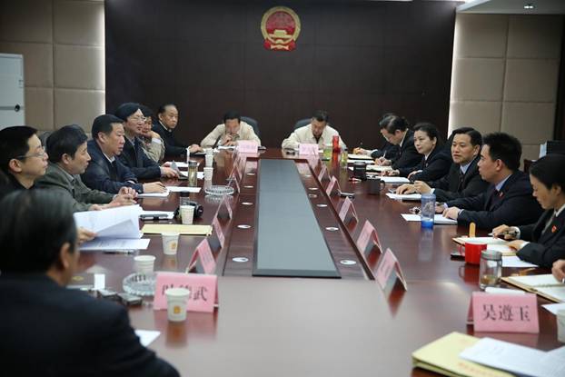 4月26日上午,由市人大常委会副主任吴开保带领的量刑规范化工作调研组一行八人在市中院副院长叶德武、区人大常委会主任曾新建等陪同下到西陵区法院调研,并召开工作座谈会。